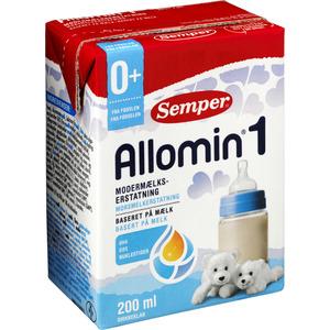 Allomin 1 modermælkserstatning – ready to drink – 200 mlAllomin 1 dækker barnets fulde ernæringsbehov som erstatning for eller supplement til modermælk. Allomin 1 kan anvendes fra fødslen. Allomin 1 indeholder: GOS, som er kostfibre, der gavner barnets ma (Læs mere)